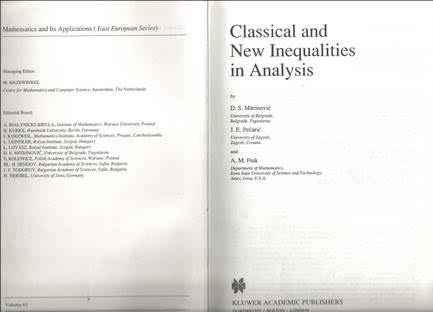 Na lijevoj strani možete vidjeti da je prof. Mitrinović bio i u Editorial Bordu te serije matematičkih monografija izdavačke kuće Kluwer Academic Publishers. Dordrecht / Boston / London.