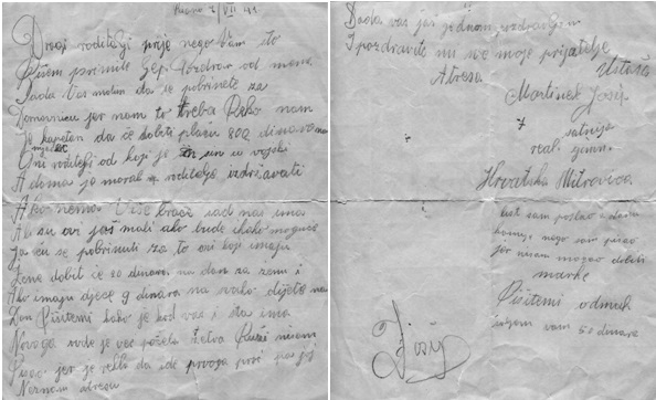Kako se iz ovoga pisma vidi, odmah po proglašenju Nezavisne Države Hrvatske Josip Martinek je, kao i tisuće drugih mladih Hrvata, koji su u to vrieme bili na odsluženju vojne obveze u ondašnjoj “jugoslovenskoj” (velikosrbijanskoj) vojsci, odmah dragovoljno stupio u obranu svoje mlade države - u redove ustaške vojnice.