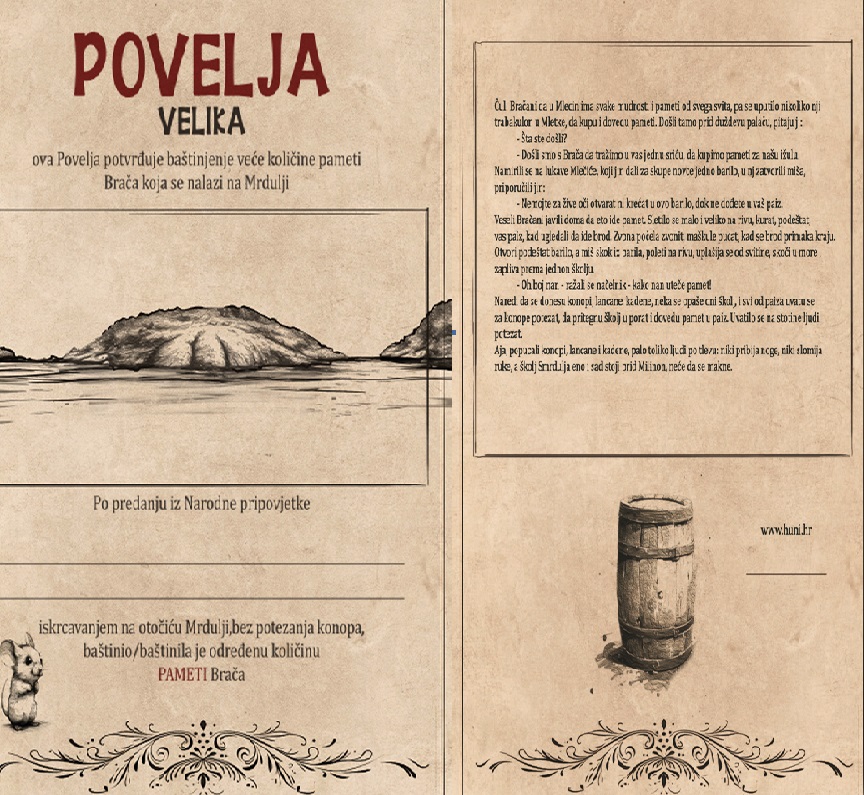 Evo preslike povelje koje smo besplatno nudili sudionicima kao souvenir i objašnjenje potezanja Mrduje, koju nitko nije htio uzeti, a kamo li se iskrcati na Mrduju i tako dobiti dio te pameti na Mrduji.