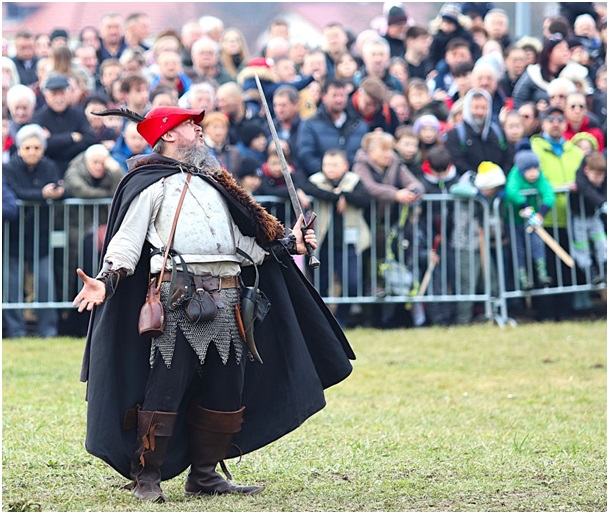 Organizatorima, Družbi vitezova zlatnoga kaleža i njihovu nedovoljno istaknutom predsjedniku treba odati puno i svako priznanje, ali svakako i skrivenome scenaristu/koreografu/redatelju koji je osmislio sav ovaj tako zahtjevan i mnoštven (ali i opasan!) igrokaz i to na način da ozlijeđenih nije bilo. A ipak tu su bili i strijelci, i konjanici, i eksplozije bombi i dimne zavjese u terenu i gužvovito ukrštavanje mačeva i sveg onog drugog iz kmetskog, vrlo ušiljenog arsenala. Uprizorenje je to bilo s cijelom jednom masom ljudi iz čak dvadesetak udruga, a sve pod palicom Družbe Vitezova Zlatnog Kaleža (iz prosinca 2004.), atu govorimo o cijenjenoj udruzi koja se bavi prikazima života u srednjem vijeku i u raznim drugim prilikama.